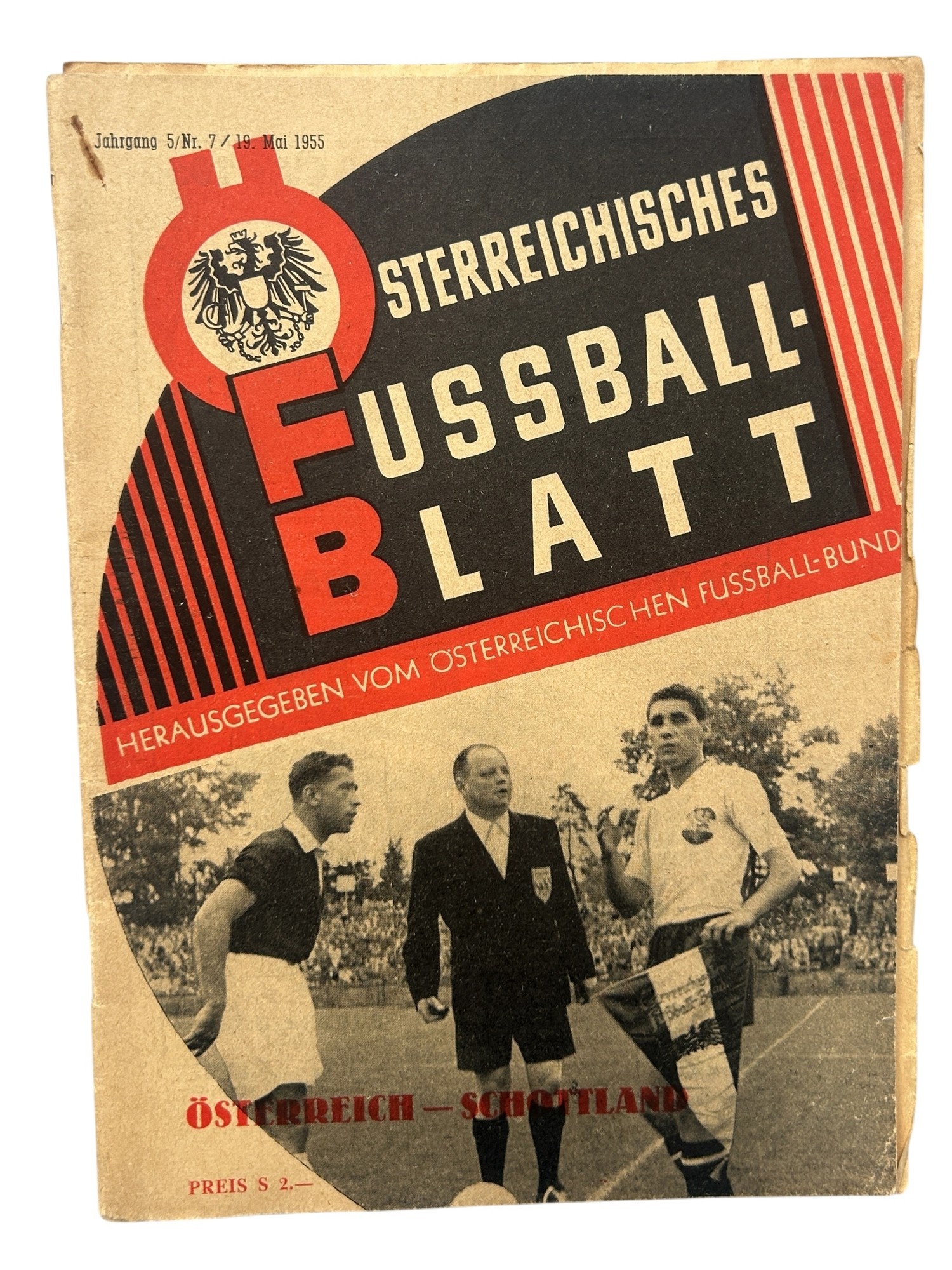 1955 AUSTRIA VERSUS SCOTLAND FOOTBALL PROGRAMME, 19/5/1955, WITH TEAM SHEET SUPPLEMENT. GENERALLY GOOD.