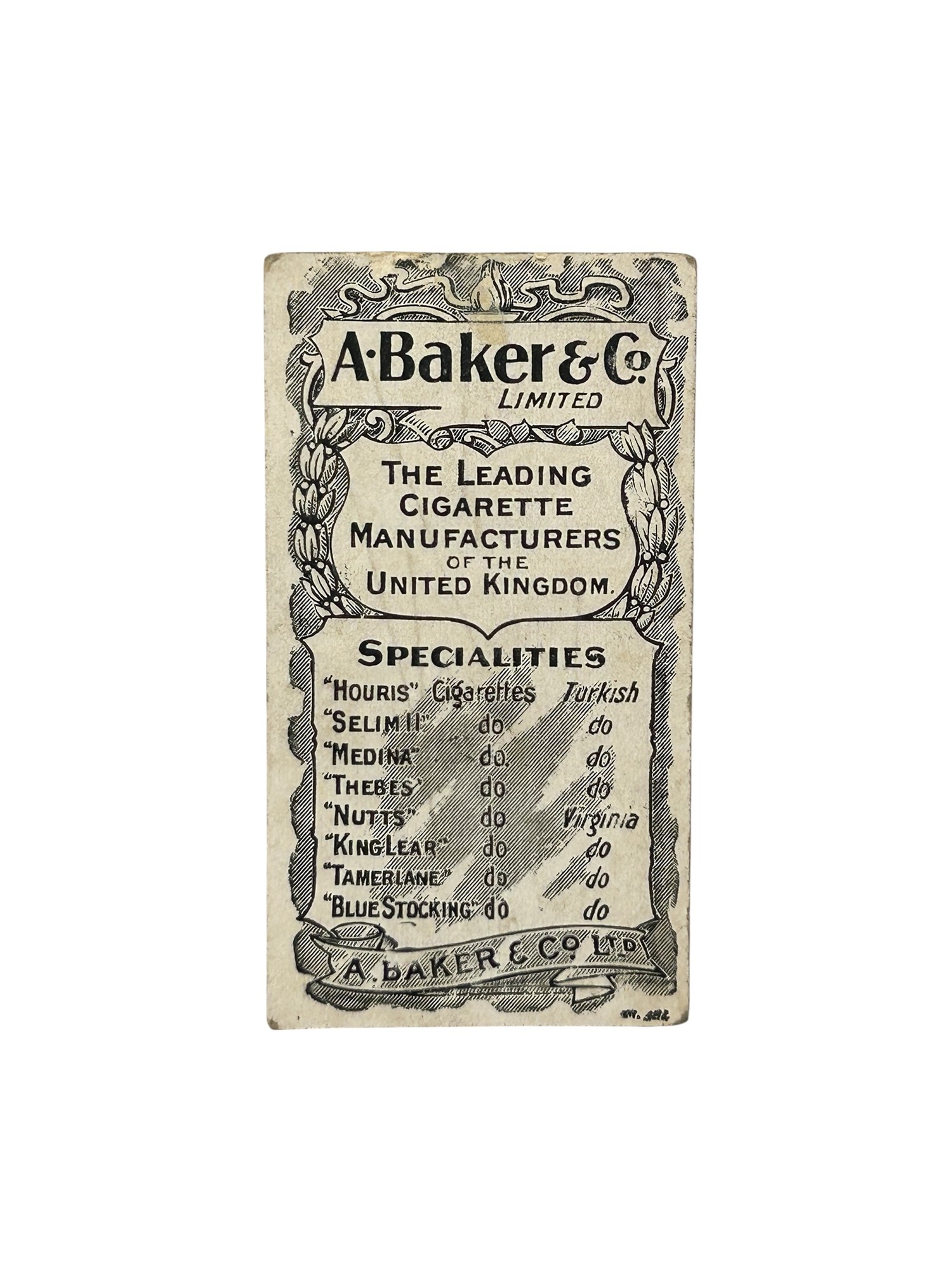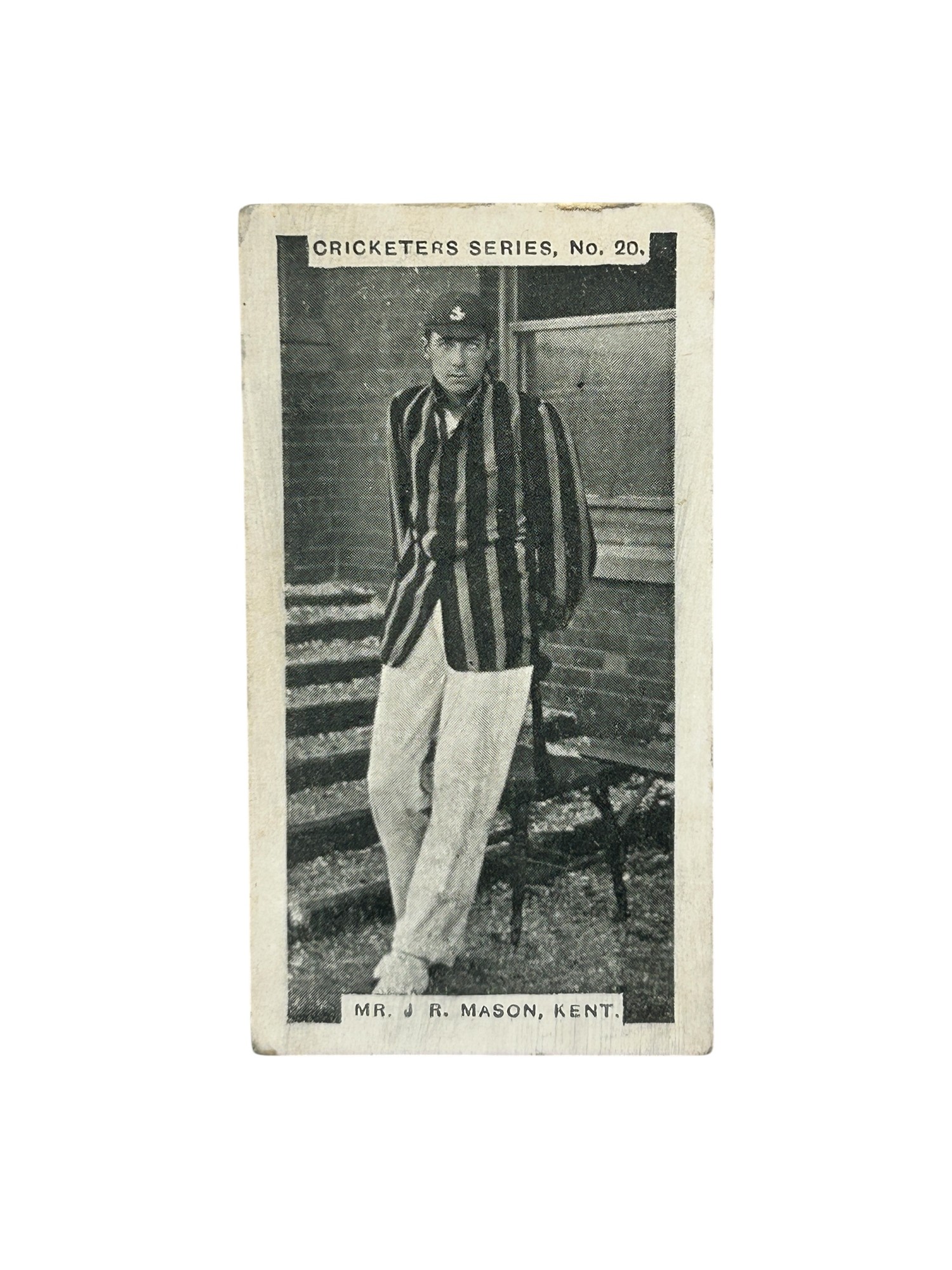 A. BAKER CRICKETERS SERIES CIGARETTE CARD, MR J R MASON, KENT, CRICKET, NUMBER 20.