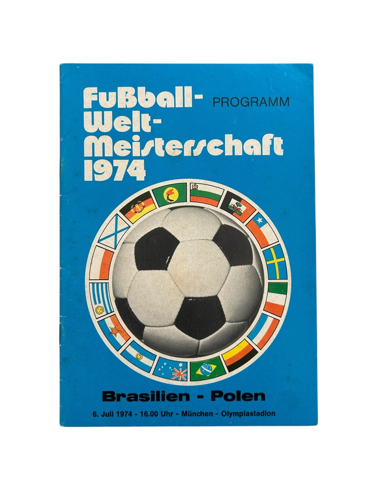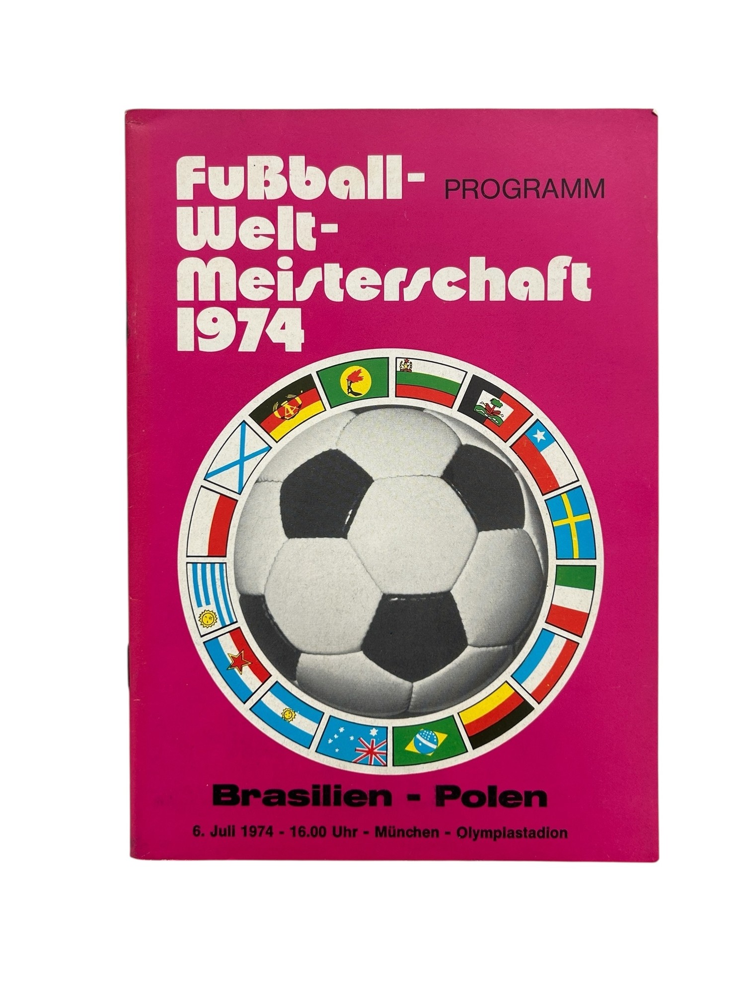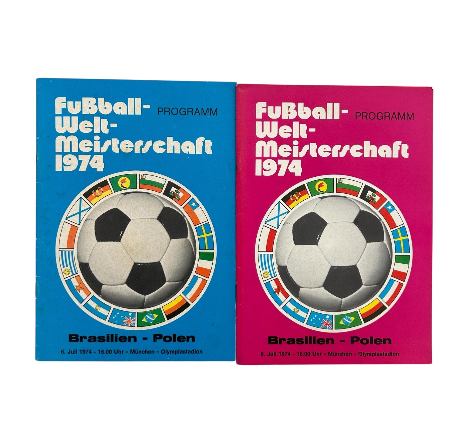 X2 WORLD CUP WEST GERMANY 1974 FOOTBALL PROGRAMMES, BRAZIL VERSUS POLAND THIRD PLACE PLAY OFF, 6/7/1974, 2 COLOUR VARIANTS (BLUE/PINK). GENERALLY GOOD.