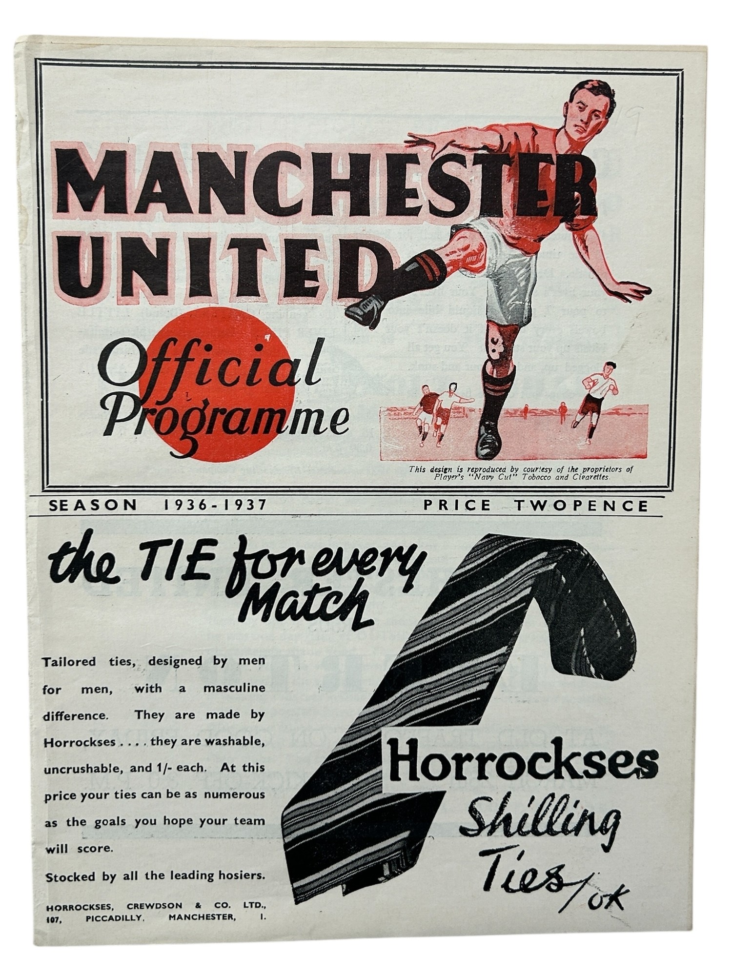 MANCHESTER UNITED VERSUS GRIMSBY TOWN 1936/37 FOOTBALL PROGRAMME, 20/03/1937. EX BOUND VOLUME.