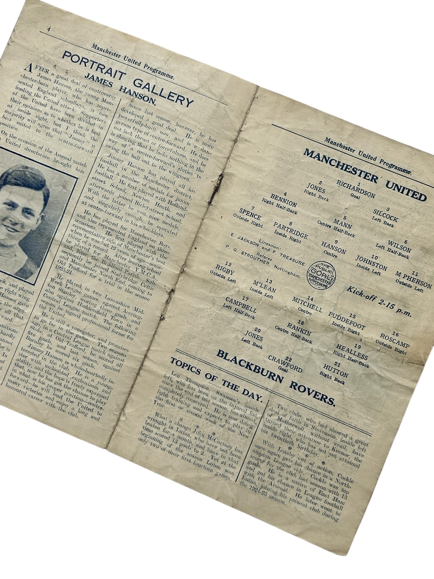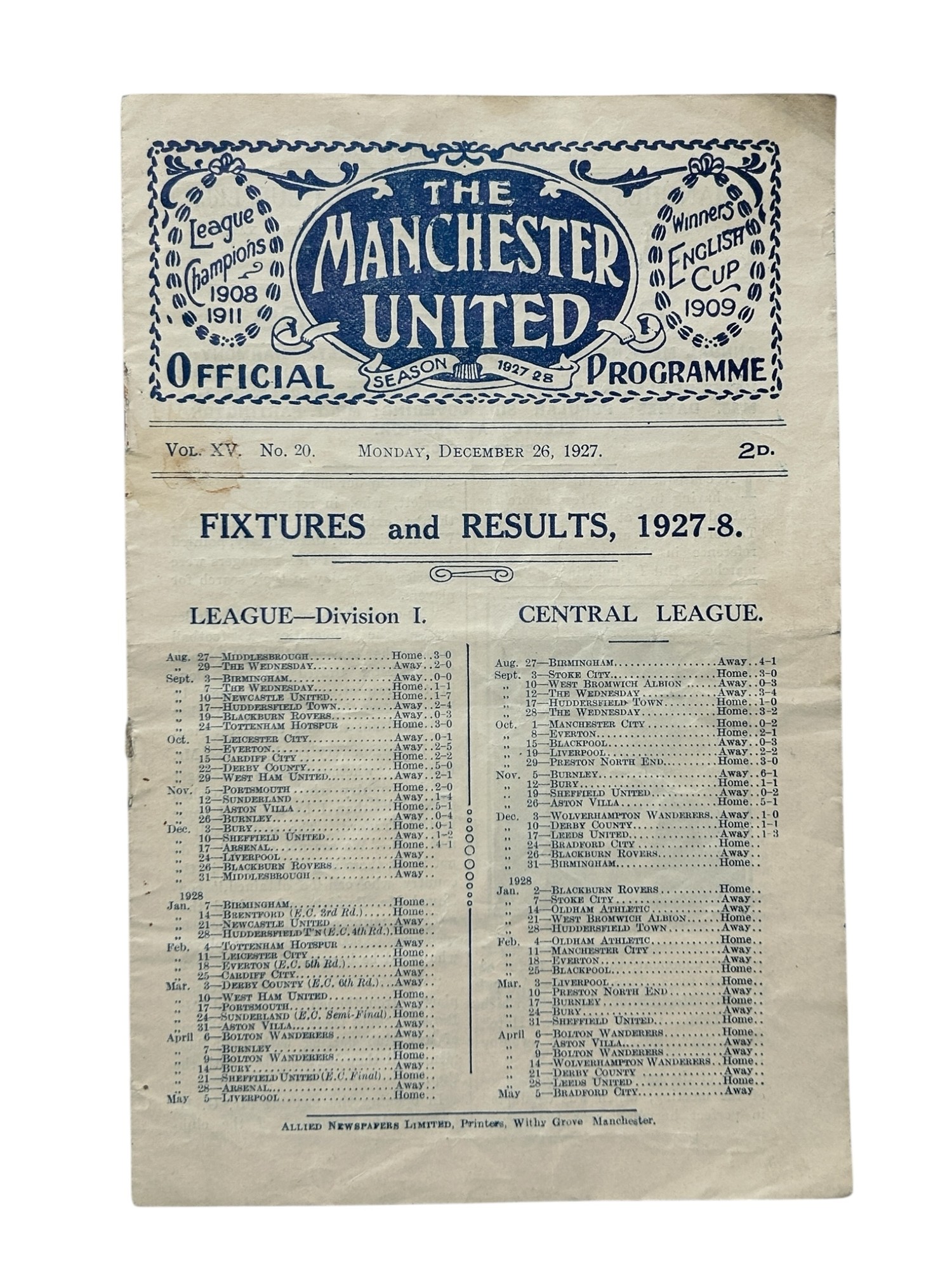 MANCHESTER UNITED VERSUS BLACKBURN ROVERS 1927/28 FOOTBALL PROGRAMME, 26/12/1927. FOLDS NOTED.