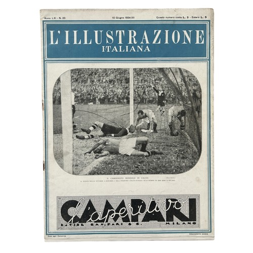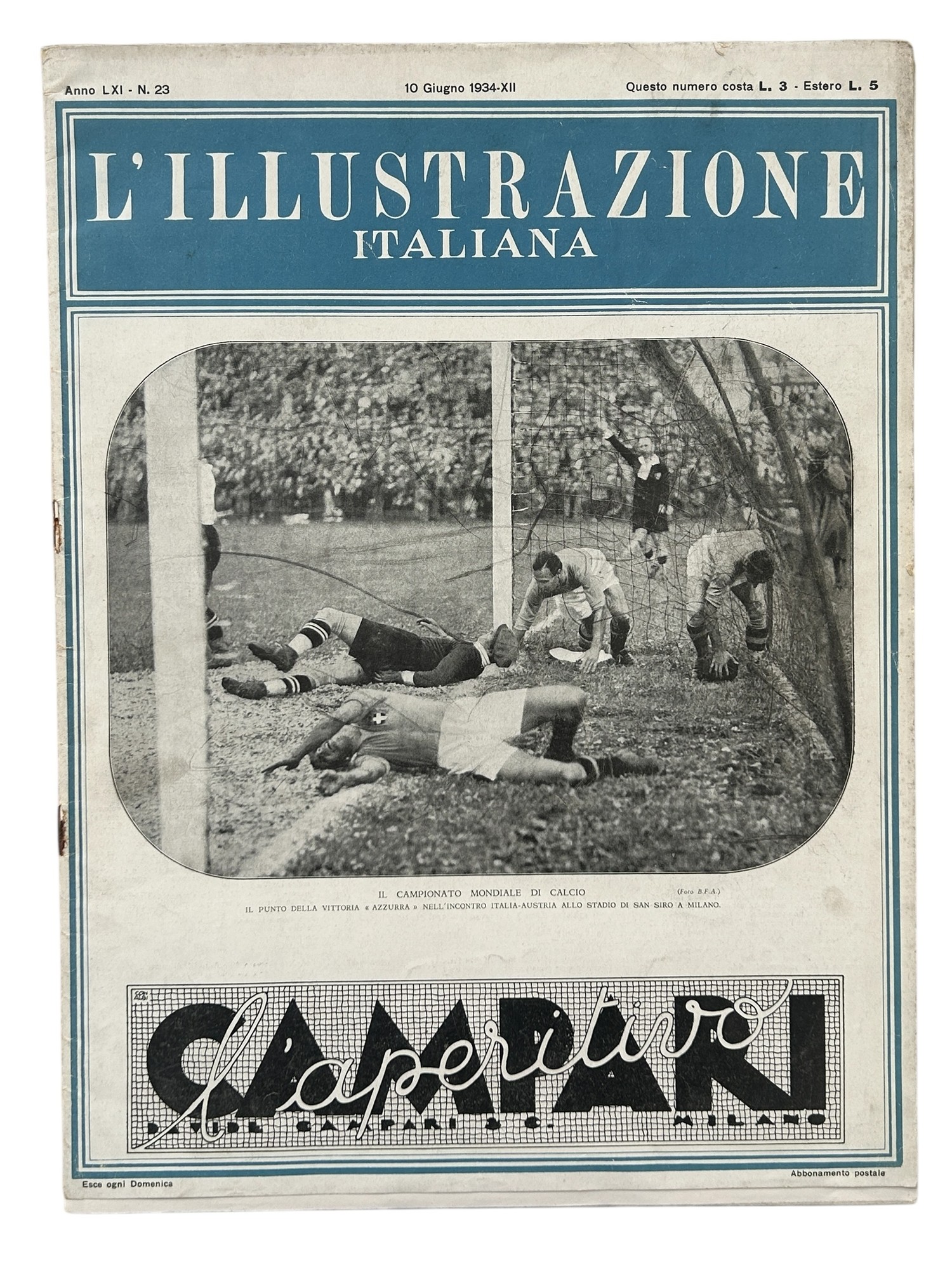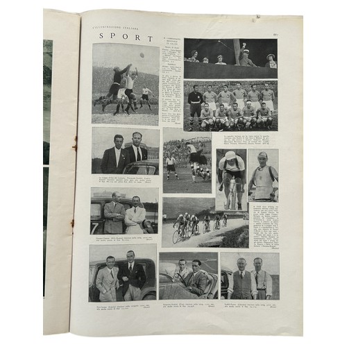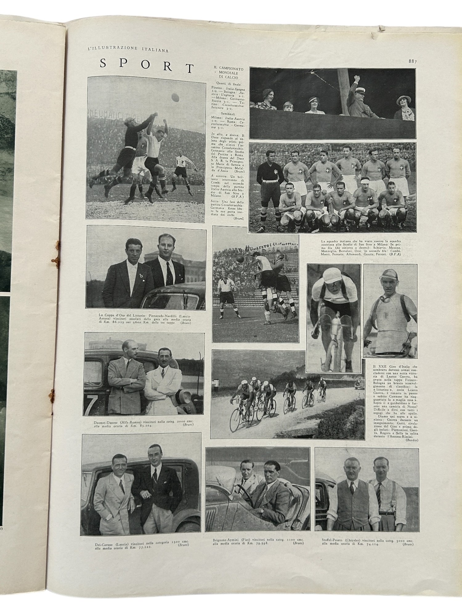 1934 ITALY WORLD CUP FINAL, ITALY VERSUS CZECHOSLOVAKIA, L'ILLUSTRAZIONE ITALIANA MAGAZINE/ NEWSPAPER ISSUE DATED 10/6/1934(THE DAY OF THE FINAL), COVER AND 'SPORT' REPORT TO INNER WITH MENTION TO TOURNAMENT/ FINAL. RUSTY STAPLES LOOSE FROM COVER.