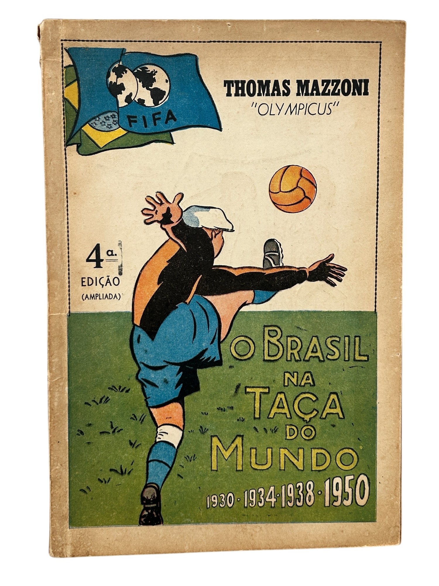 1950 BRAZIL WORLD CUP REPORT, BRAZIL AT THE FIFA WORLD CUP 1930-1950: RARE WORLD CUP REPORT BY TOMAS MAZZONI (WRITING AS "OLIMPICUS") ENTITLED: ''O BRASIL NA TACA DO MUNDO 1930 - 1934 - 1938 - 1950, TRANSLATING AS BRAZIL AT THE 1930-1950 WORLD CUP, VERY RARE PUBLICATION CHRONICLING BRAZIL AT THE FIFA WORLD CUP, 1950 EDITION, PUBLISHED AFTER THE 1950 FIFA WORLD CUP HELD IN BRAZIL, THE AUTHOR MAZZONI BEING AN EMINENT FOOTBALL JOURNALIST OF THE ERA, ILLUSTRATED WITH MANY RARE PHOTOGRAPHS, 116 PAGES, PUBLISHED BY EDICOES E PUBLICASOES, SAO PAULO, ATTRACTIVE COLOUR PICTORIAL WRAPPERS. MINOR HANDLING MARKS, SOME MINOR WEAR THROUGHOUT.