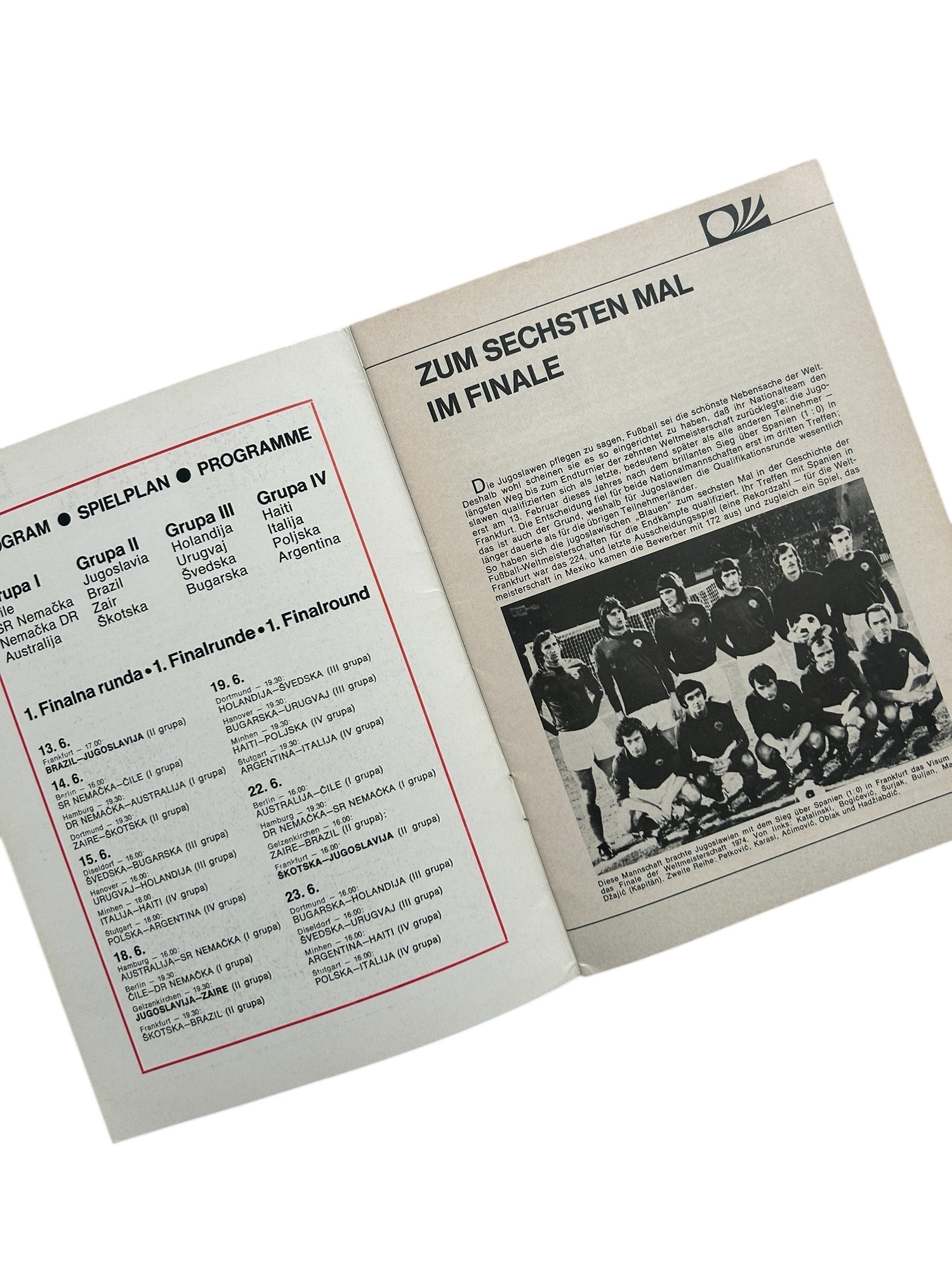 WORLD CUP WEST GERMANY 1974 EPHEMERA, YUGOSLAVIA/ JUGOSLAWIEN OFFICIAL TOURNAMENT PROGRAMME, DDR (EAST GERMANY) VERSUS AUSTRALIA EAST GERMANY ISSUE PROGRAMME 14/6/1974.