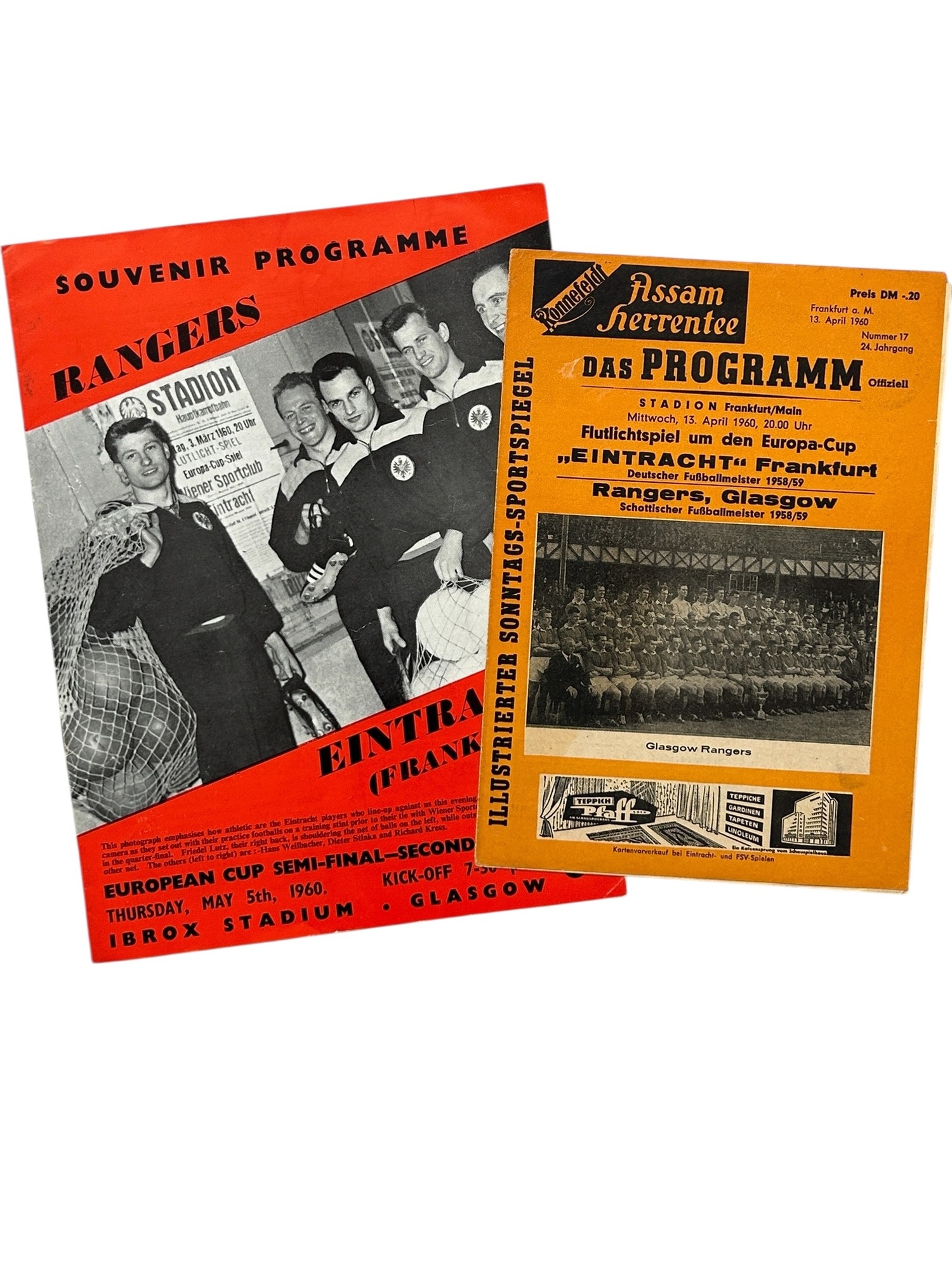 GLASGOW RANGERS VERSUS EINTRACHT FRANKFURT 1959/60 EUROPEAN CUP FOOTBALL PROGRAMMES, BOTH LEGS, 13/4/1960 IN FRANKFURT, 5/5/1960 AT IBROX. VERY GOOD CONDITION.