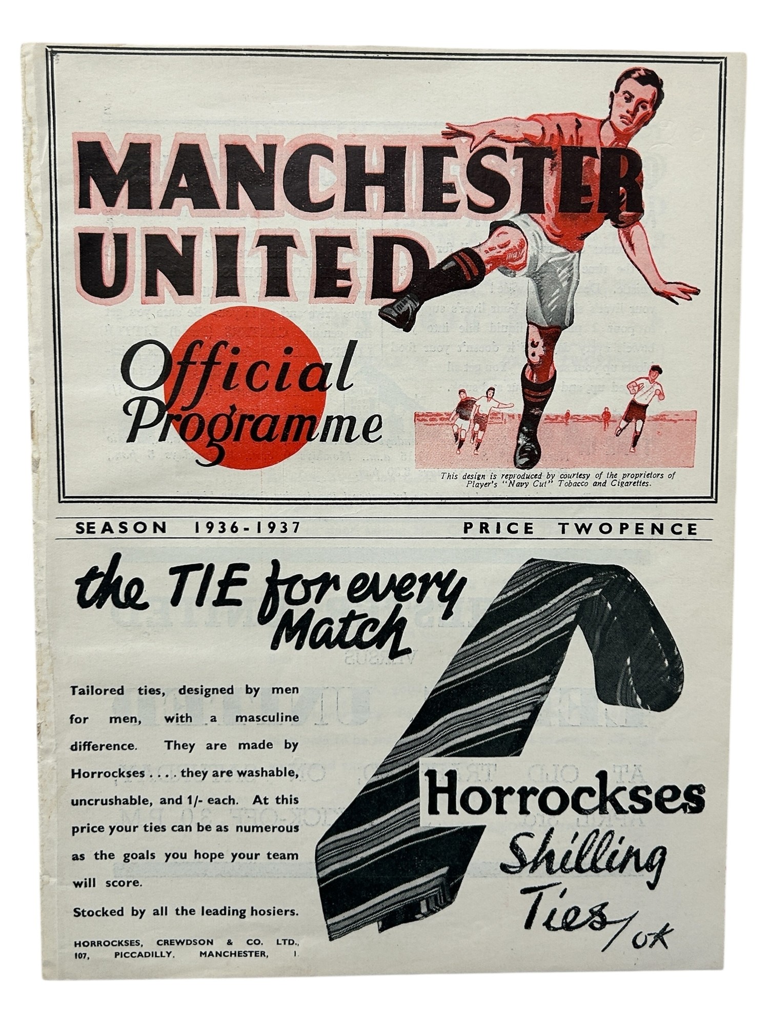 MANCHESTER UNITED VERSUS EVERTON 1936/37 FOOTBALL PROGRAMME, 26/03/1937. EX BOUND VOLUME.