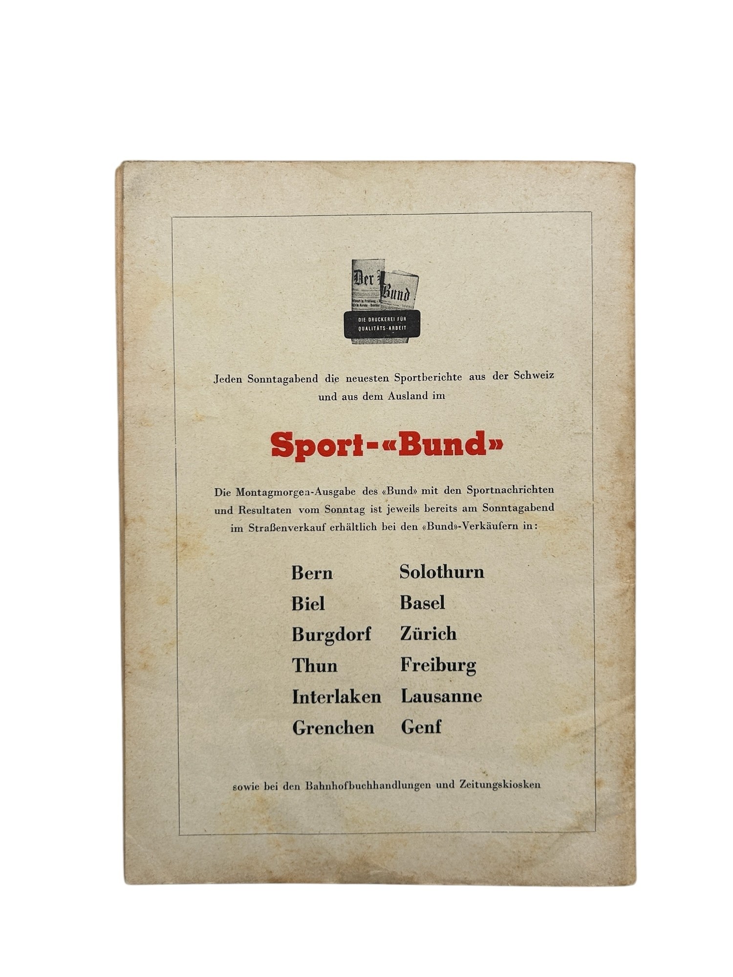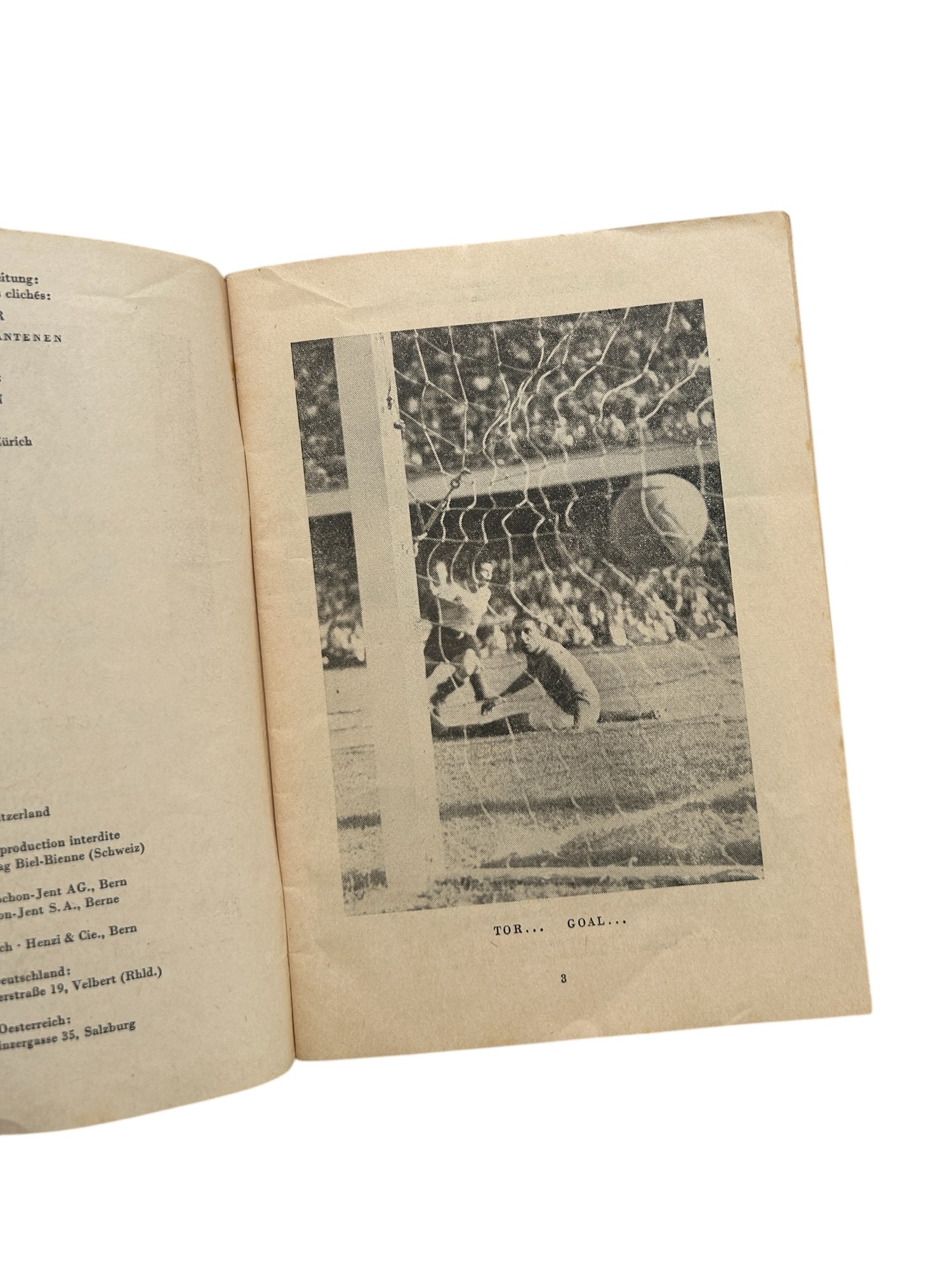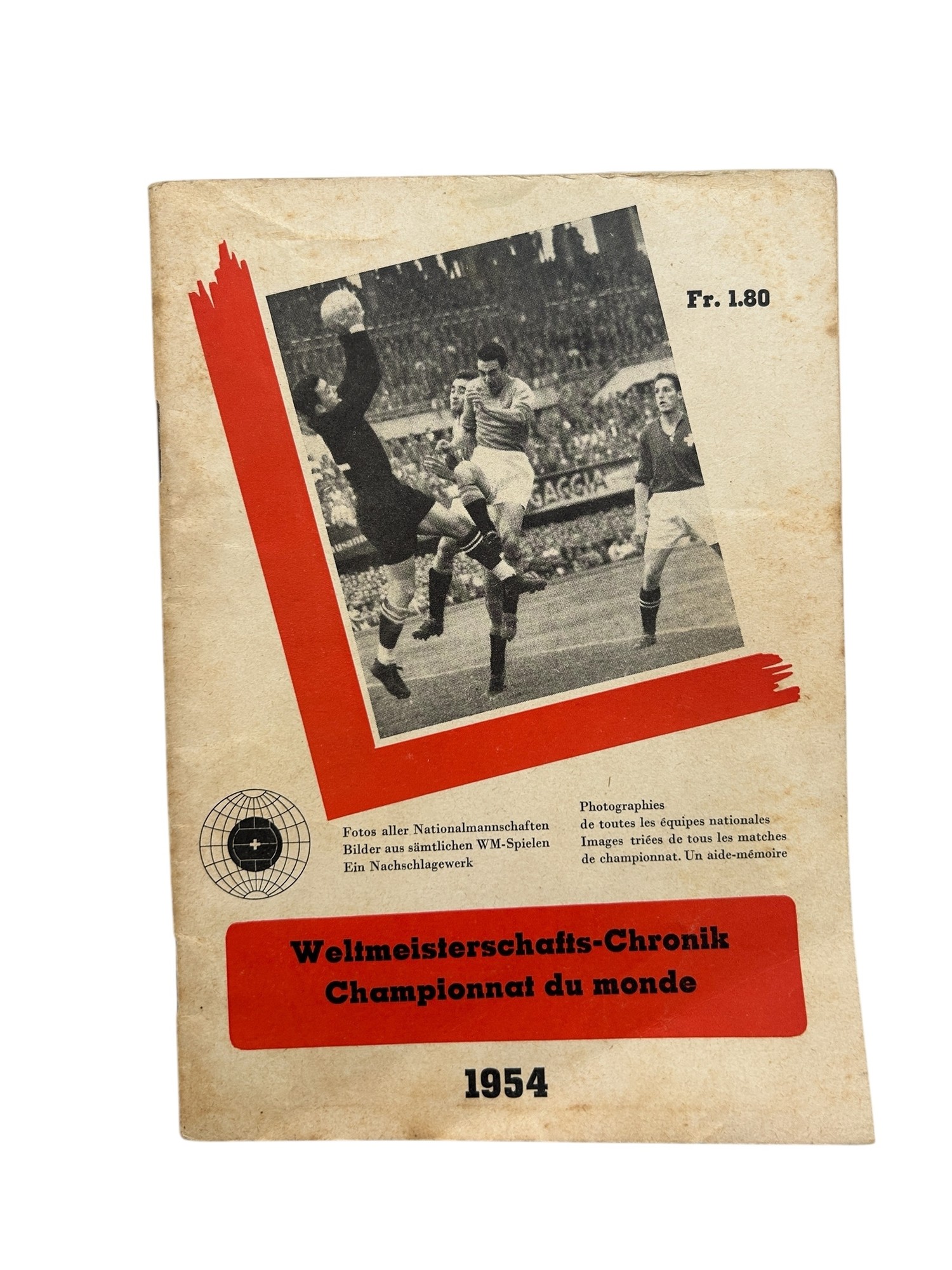 SWITZERLAND 1954 WORLD CUP OFFICIAL TOURNAMENT REVIEW PROGRAMME, PRESS ISSUED ITEM, 'WELTMEISTERSCHAFTS- CHRONIK CHAMPIONNAT DU MONDE'. FOXING NOTED.
