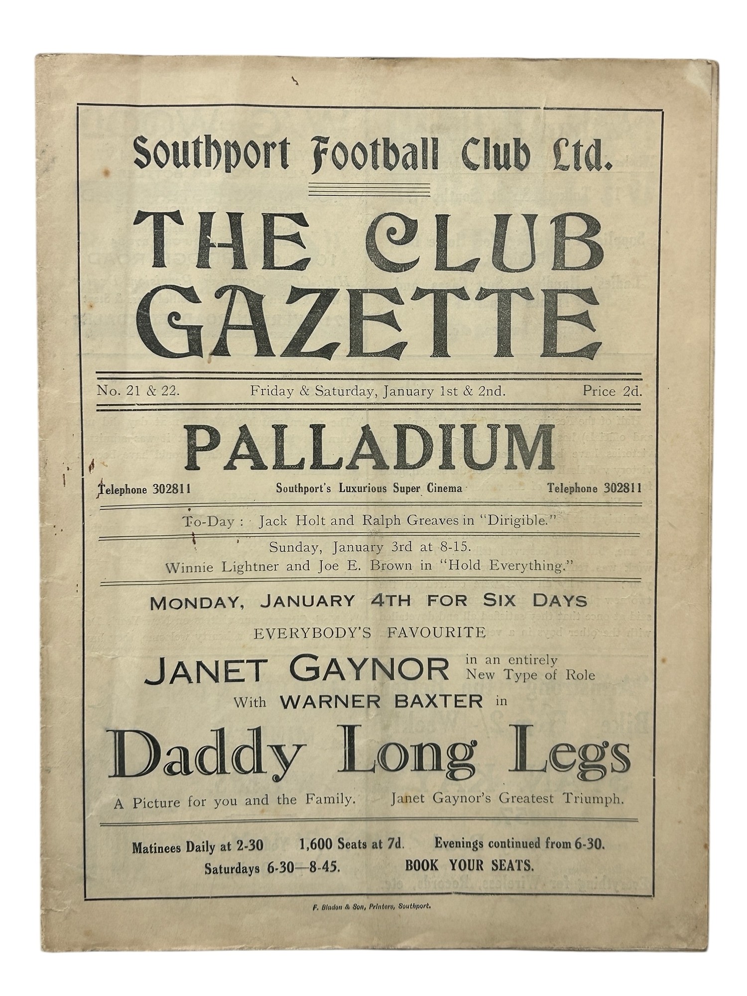 SOUTHPORT VERSUS YORK CITY/ ROSSENDALE, 1931/32 FOOTBALL PROGRAMME, DOUBLE ISSUE, 1-2/1/1932, YORK CITY LEAGUE & ROSSENDALE RESERVES. CREASING, GENERALLY GOOD.