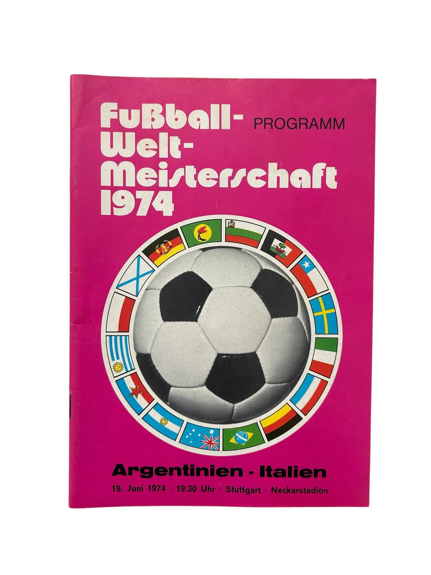 1974 WEST GERMANY WORLD CUP FOOTBALL PROGRAMME, ARGENTINIA VERSUS ITALY, 16/6/1974. GENERALLY GOOD, MINOR FOXING.