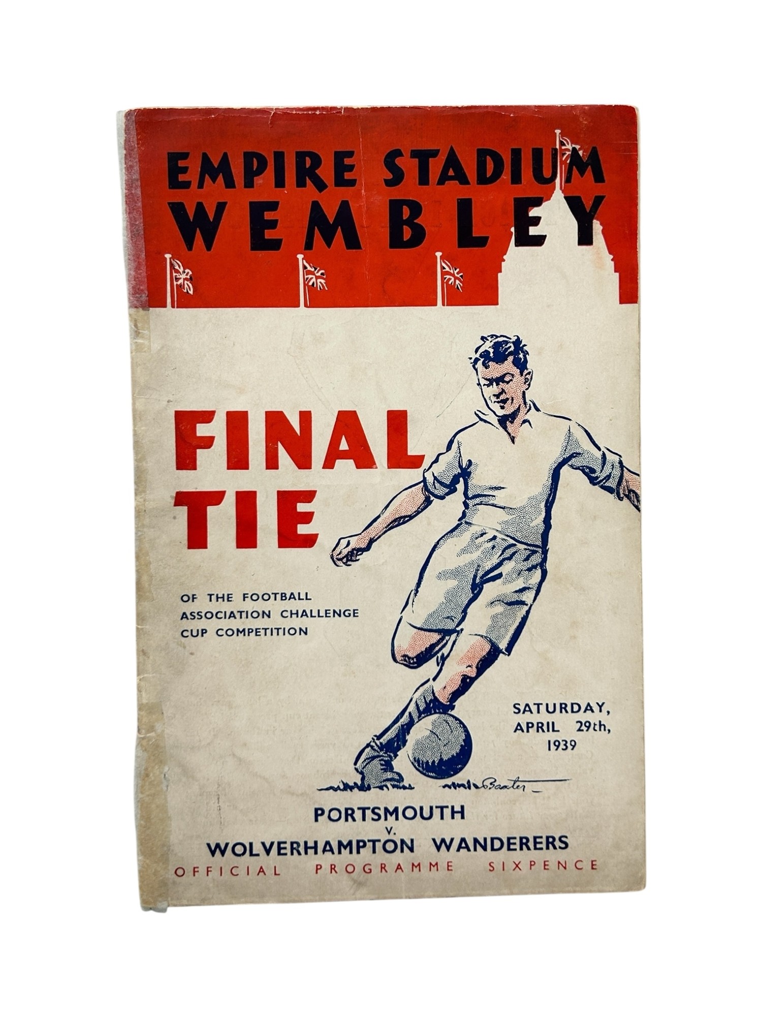 1939 FA CUP FINAL TIE FOOTBALL PROGRAMME, WOLVERHAMPTON WANDERERS VERSUS PORTSMOUTH, 29/4/1939. LINE UP CHANGES, TAPE REPAIR TO SPINE.