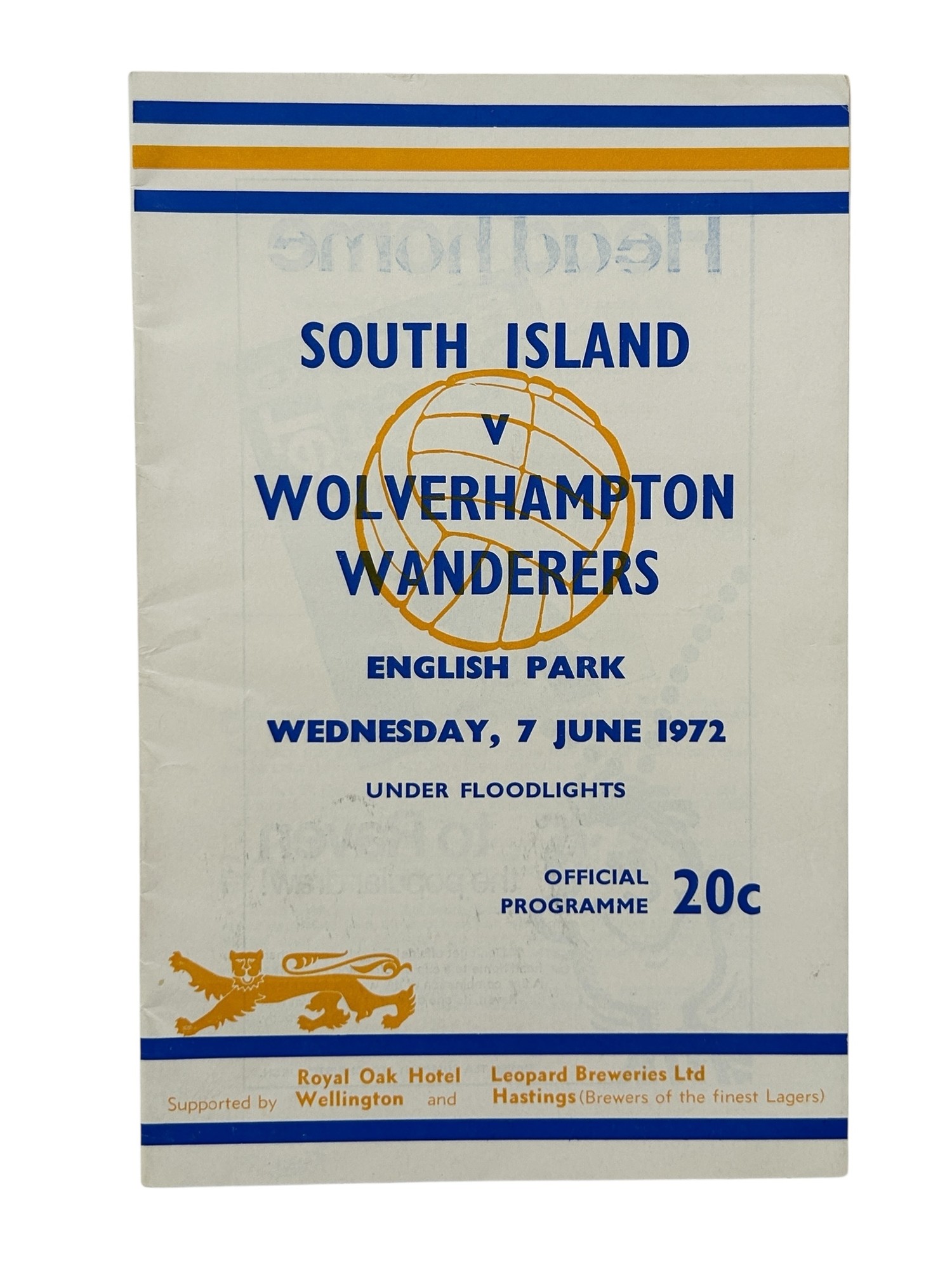WOLVERHAMPTON WANDERERS AWAY VERSUS SOUTH ISLAND 1972 FOOTBALL PROGRAMME, 7/6/1972, FRIENDLY ISSUE. HEAVY WRITING TO LINEUP PAGE.