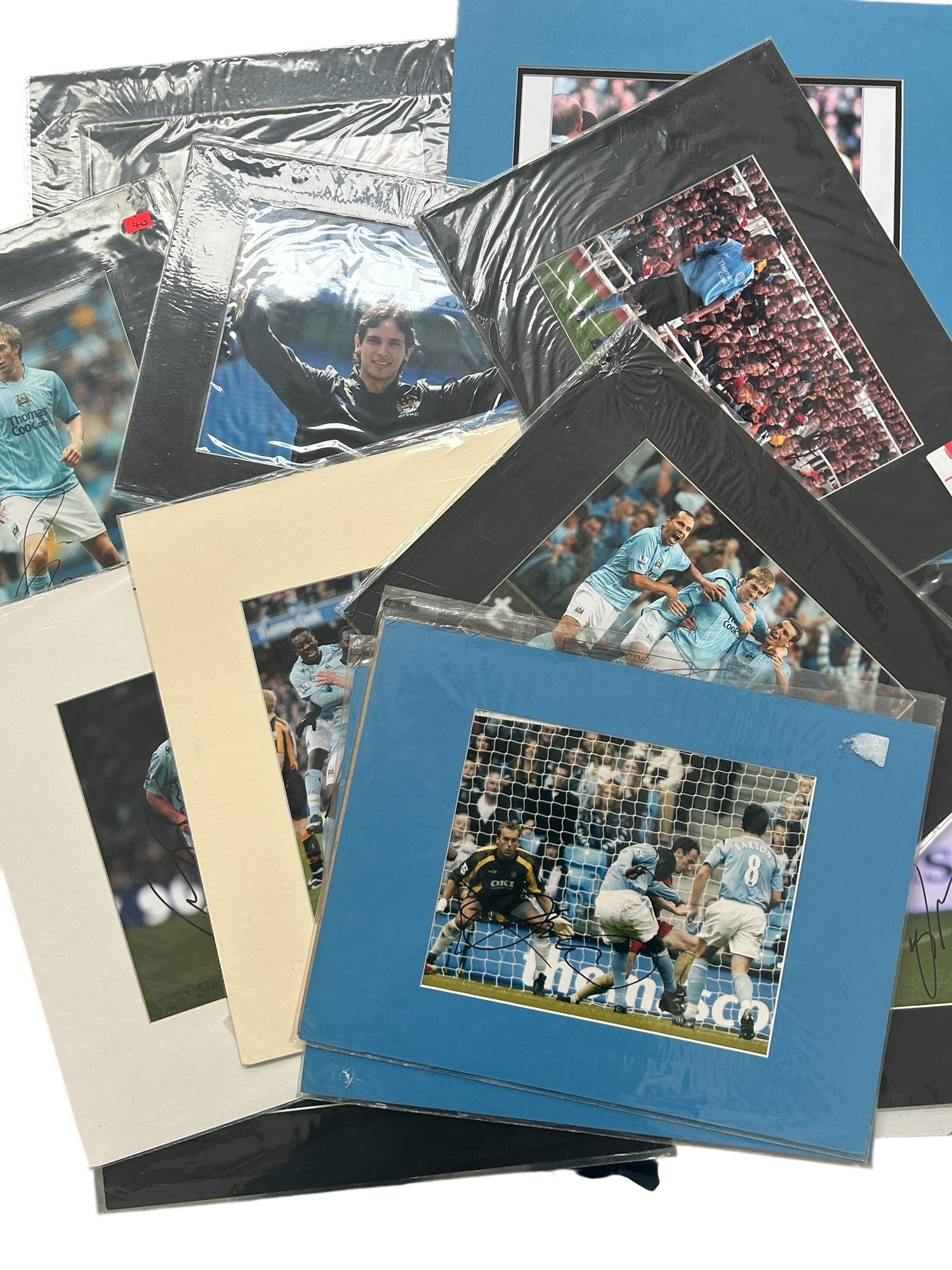 X14 MANCHESTER CITY MOUNTED/ SIGNED PLAYER PHOTOS, SOME CoAs, MAINLY 2000s ONWARDS.