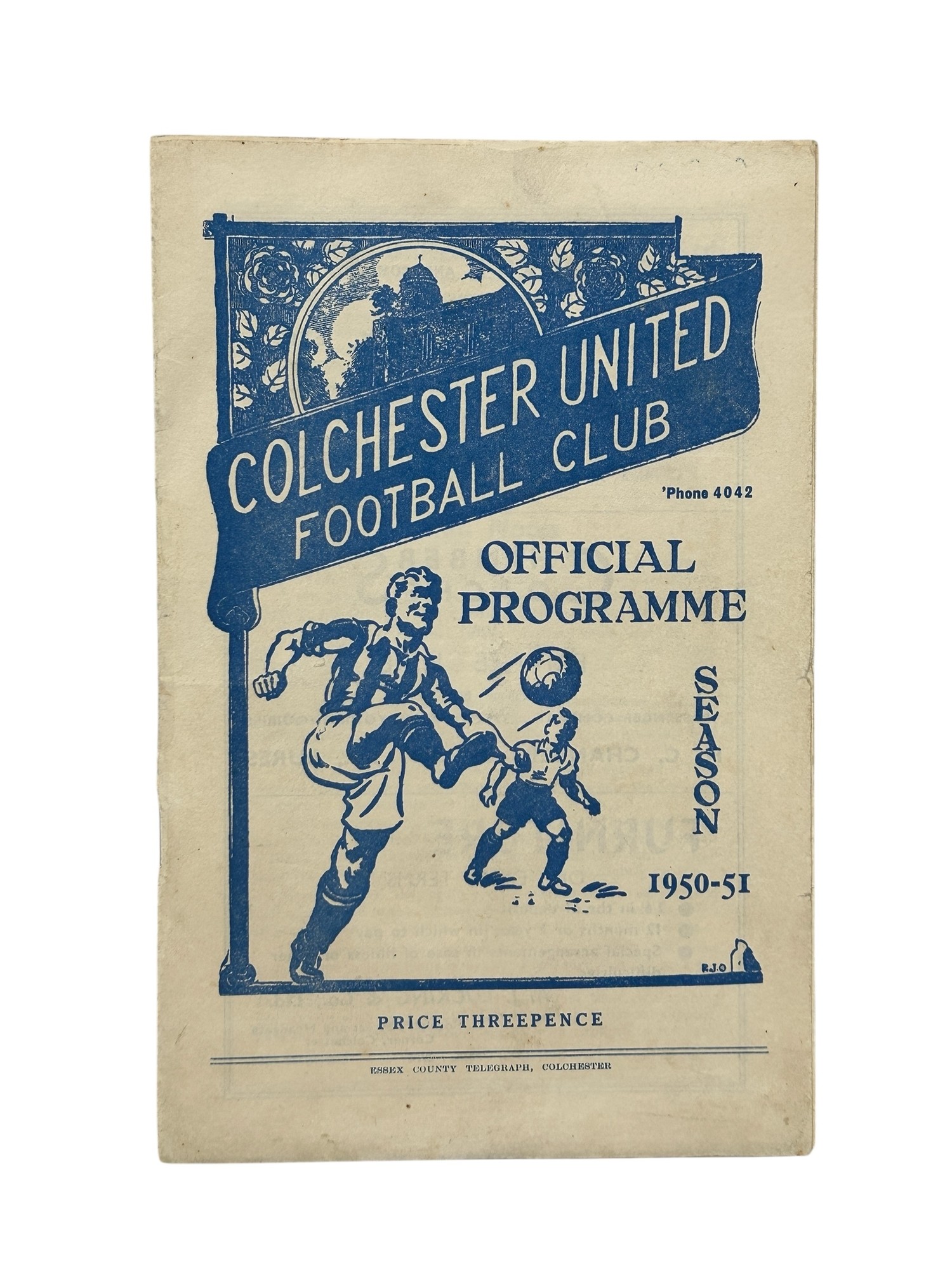 COLCHESTER UNITED VERSUS BRISTOL ROVERS 1950/51 FOOTBALL PROGRAMME, COLCHESTER'S FIRST HOME FIXTURE IN THE FOOTBALL LEAGUE, 26/8/1950. LINE UP CHANGES, OTHERWISE GOOD.