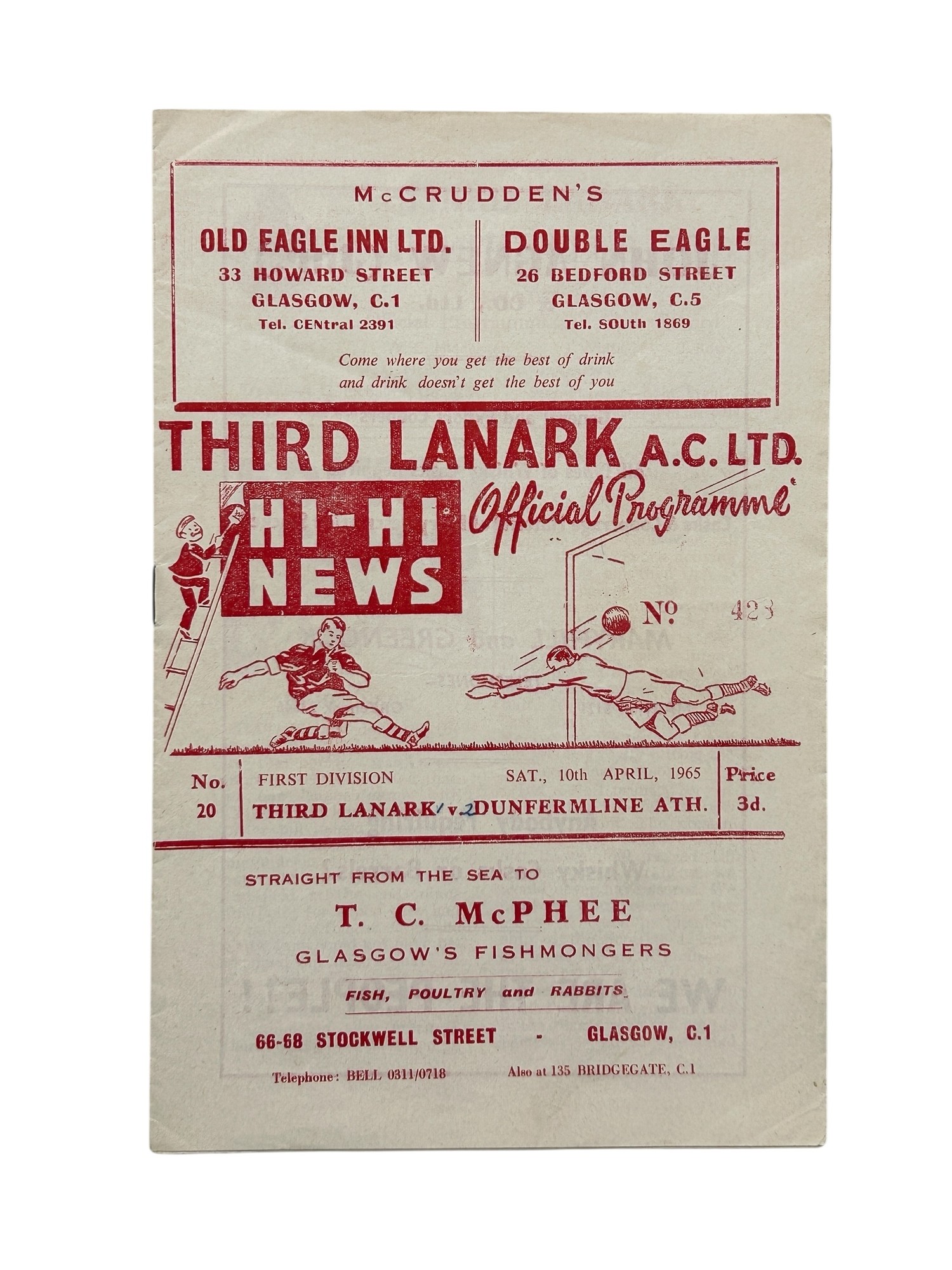 THIRD LANARK VERSUS DUNFERMLINE 1964/65 FOOTBALL PROGRAMME, FINAL EVER PROGRAMME ISSUED BY THIRDS, 10/4/1965. SCORE NOTED TO COVER, OTHERWISE GOOD.