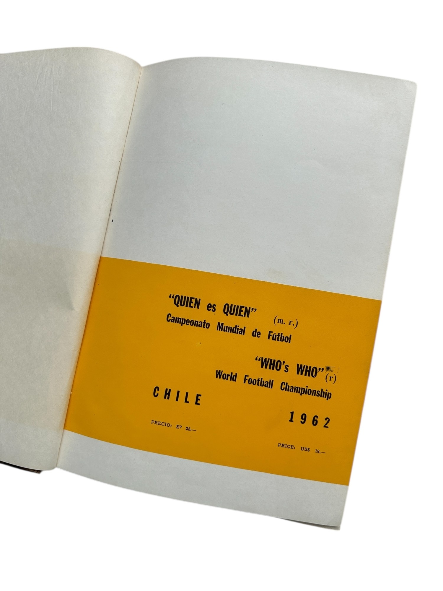 1962 CHILE WORLD CUP QUIEN ES QUIEN DEPORTIVO MUNDIAL BOOK, WHOS WHO WORLD FOOTBALL. DAMAGE TO SPINE NOTED.