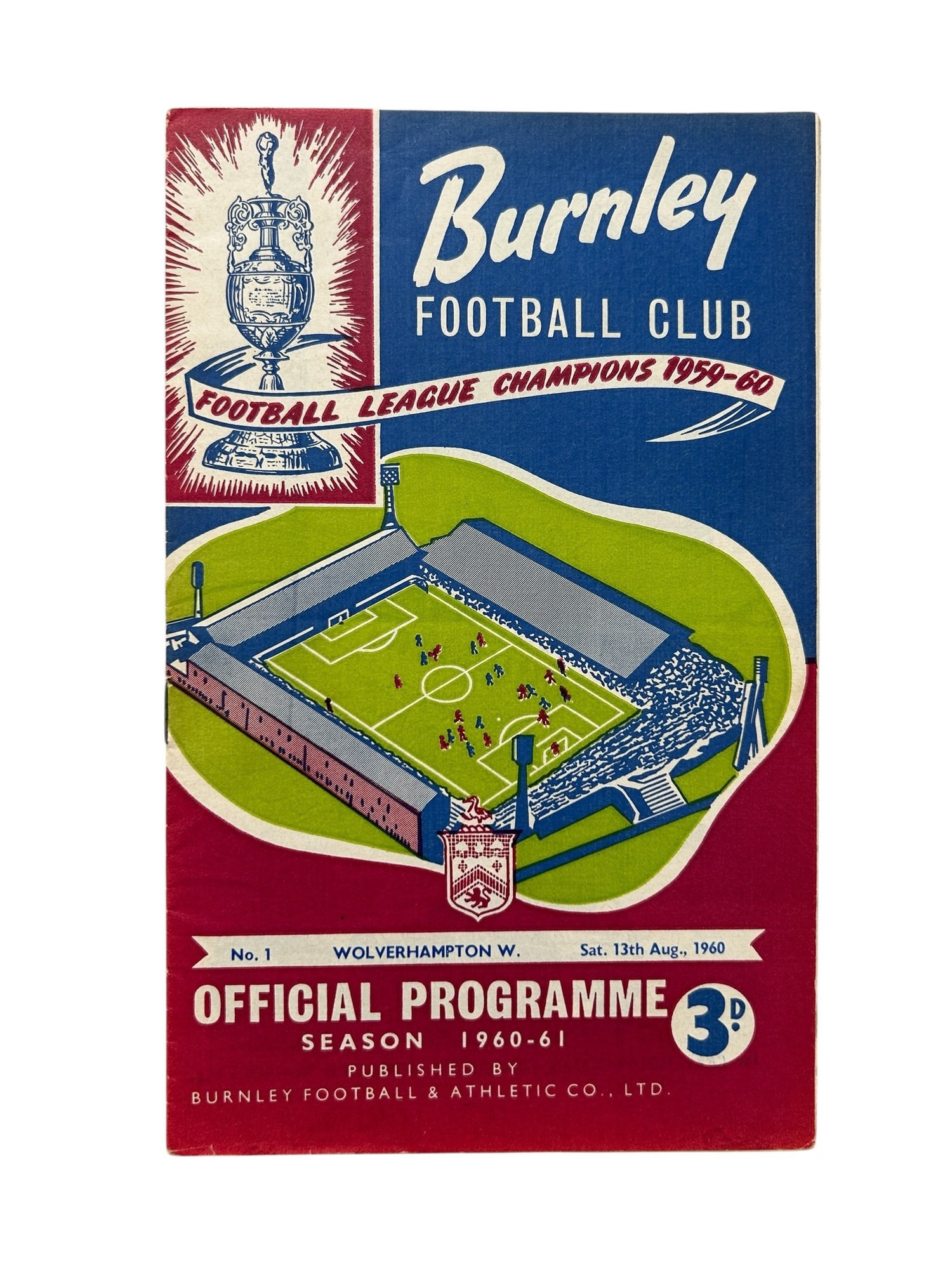 1960 CHARITY SHIELD FOOTBALL PROGRAMME, BURNLEY VERSUS WOLVERHAMPTON WANDERERS, 13/8/1960. GENERALLY GOOD.